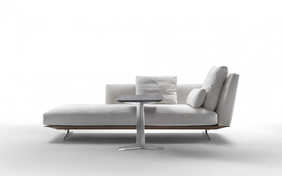 With a name that brilliantly sums up its personality, the Evergreen sofa is distinguished by a tastefully-discreet design that transcends the bounds of time and fashion – features that clearly carry over to the chaise longue and daybed from the same family. A delicate and sophisticated aesthetic is expressed in the design of the cast-metal base that lifts the Evergreen chaise longue and daybed off the floor; the base is available in an array of finishes. The slender seat backs and armrests open outward, accentuating the ethereal appearance of these two seating options. The seat cushions rest on a cowhide-upholstered metal base, a detail that adds value to these extremely versatile pieces, allowing them to fit effortlessly in any setting.