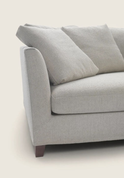 Debuted in 1984 and revisited in 1999, Victor is a sofa that completely expresses the sofa concept according to Flexform. With well-balanced proportions in the bases, seat and seat back cushions, the Victor sofa is the epitome of restrained elegance. The wood structure is padded with polyurethane foam covered in a laminated fabric. The seat back and armrest are at the same height and form the classic “Chesterfield-like nest”, a cozy refuge designed to accommodate the seat back cushions; available with goose-down padding and crushproof core insert or in polyurethane foam and Dacron. Victor is a sofa that retains the purity of its design in the two- or three-seat version and in the sectional version. Its extensive array of pieces allows for the creation of multiple compositions. In the Victor Large version, the sofa’s depth increases to 115 cm, allowing it to accommodate many cushions, which not only provide added comfort but also lend it a more contemporary decorative vibe.