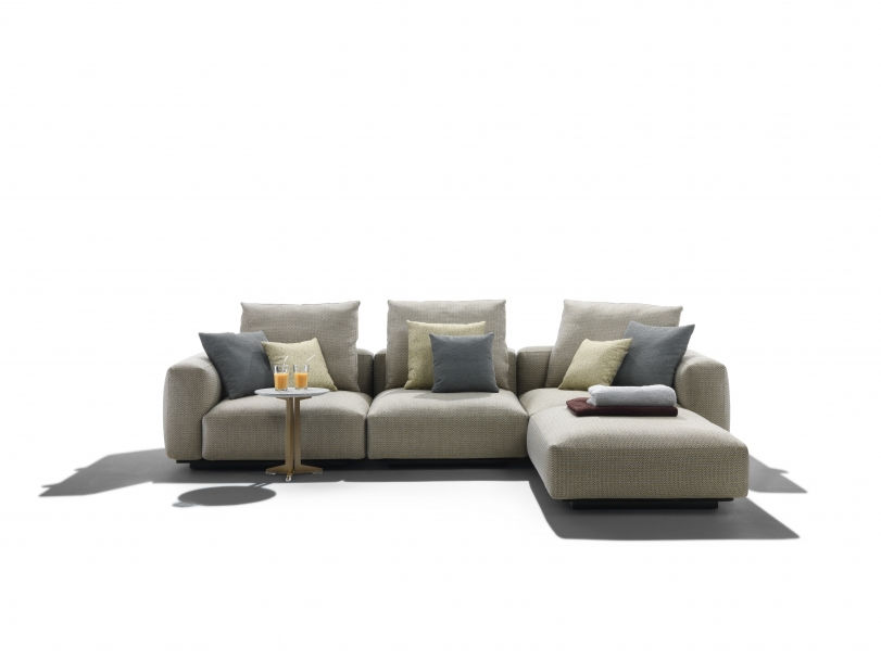 Dressed for the outdoors, the Grandemare sofa, designed by Antonio Citterio in 2011, is ready to furnish patios, terraces and porches with understated elegance. The Grandemare Outdoor seating system delivers all the practicality and comfort of an indoor upholstered sofa in an entirely outdoor version.