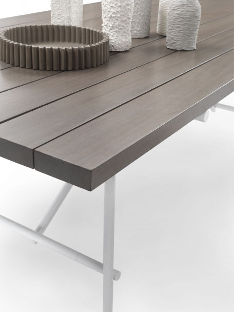 The Any Day Outdoor dining table combines pure lines and a minimalist design expressed through materials selected for their beauty and durability in outdoor settings.